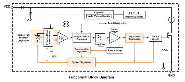 Two-Wire Unipolar Vertical Hall-Effect Switches with Advanced Diagnostics