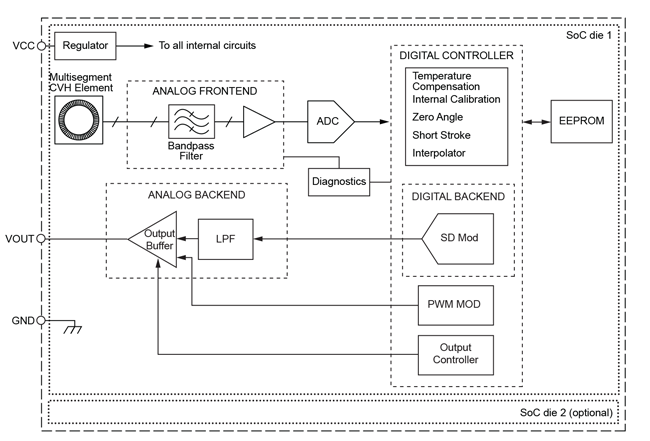 • Circular Vertical Hall (CVH) technology provides a single-channel sensor system with air gap independence