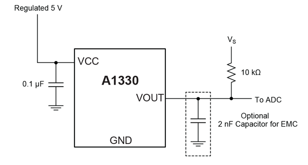 • Analog output, configurable to ratiometric or non-ratiometric