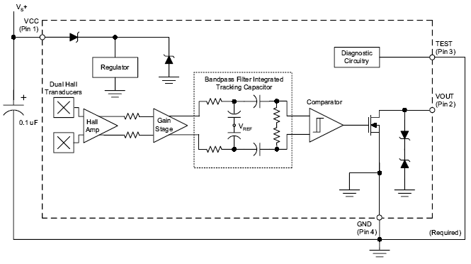The A1421/2/3 family offers high-precision motion sensing of ring magnets or ferrous targets, with an integrated filter capacitor for simplified design and improved reliability. These AC-coupled sensors provide excellent repeatability and accuracy, making them ideal for automotive transmission and crankshaft speed sensing.