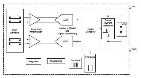 - GMR technology integrates high sensitivity MR (magnetoresistive) sensor elements and high precision BiCMOS circuits on a single silicon integrated circuit, offering high accuracy, low magnetic field operation