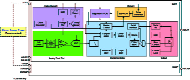 - A31102LLUBTR-DD (dual die) designed to meet ASIL D requirements when integrated and used in conjunction with the appropriate system-level control, in the manner prescribed in the A31102 Safety Manual