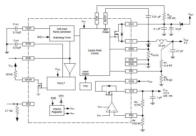 - Adjustable buck and linear regulators