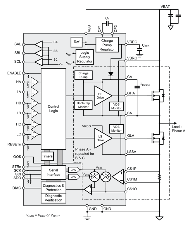 Automotive Three-Phase MOSFET Driver with ASIL Compliance, Diagnostics, and Current Sensing