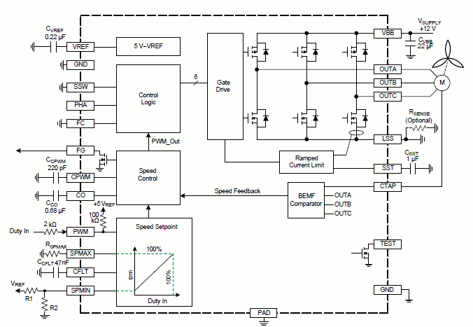 Three-Phase Sensorless Fan Driver with Integrated Closed-Loop Speed Control