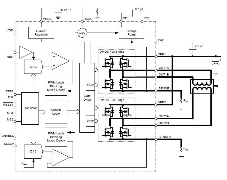DMOS Microstepping Driver with Integrated Translator and Selectable Step Modes