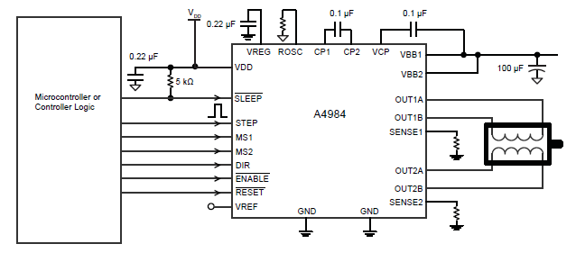 The A4984 simplifies microstepping motor control with its integrated translator and selectable step modes, offering automatic current decay selection and synchronous rectification for optimized performance.
