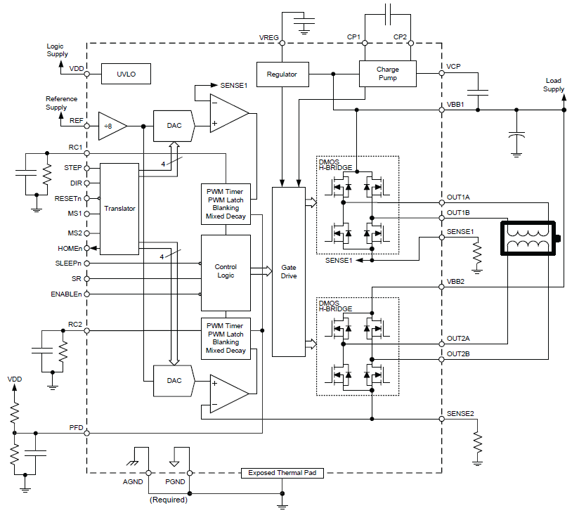 Microstepping Stepper Motor Driver with Integrated Translator and 1/8-Step Resolution
