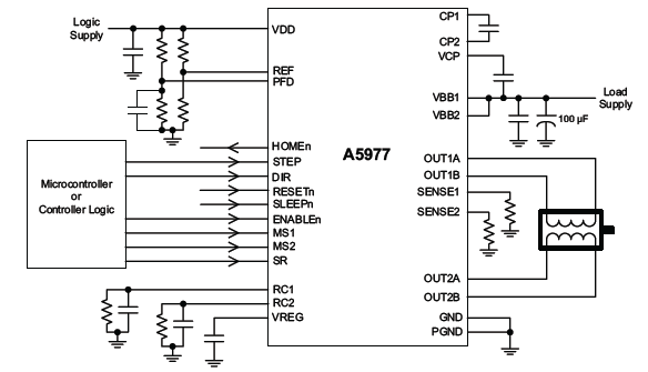 The A5977 simplifies microstepping motor control with its integrated translator and support for up to 1/8-step resolution. Offers smooth, quiet operation with selectable current decay modes.