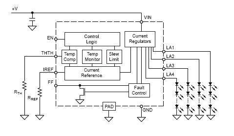 Total LED drive current up to 400 mA (LP, LJ, and LY packages) or 300 mA (LJ)