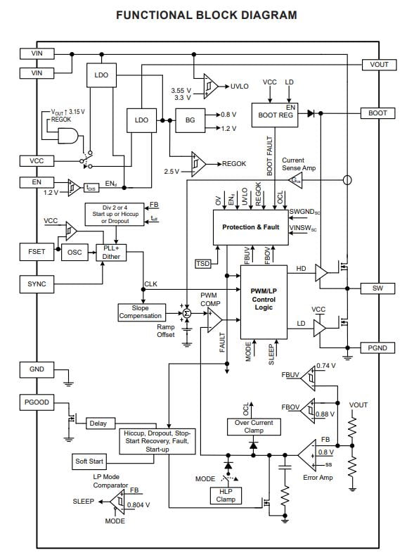 - Wide switching frequency range: 250kHz to 2.5MHz