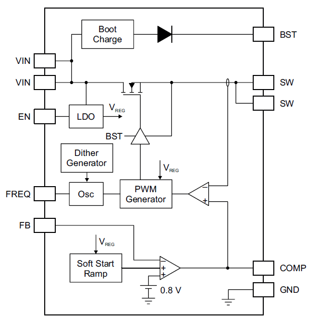- Programmable switching frequency up to 4 MHz