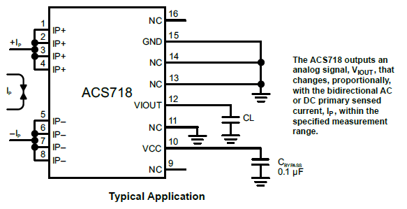 These parts are in production but have been determined to be NOT FOR NEW DESIGN. The ACS718 is an economical, high-isolation current sensor IC for AC/DC sensing, ideal for space-constrained applications. It features a low-offset Hall sensor with a 0.85mΩ copper conduction path, providing a proportional voltage output and electrical isolation for high-side current sensing.