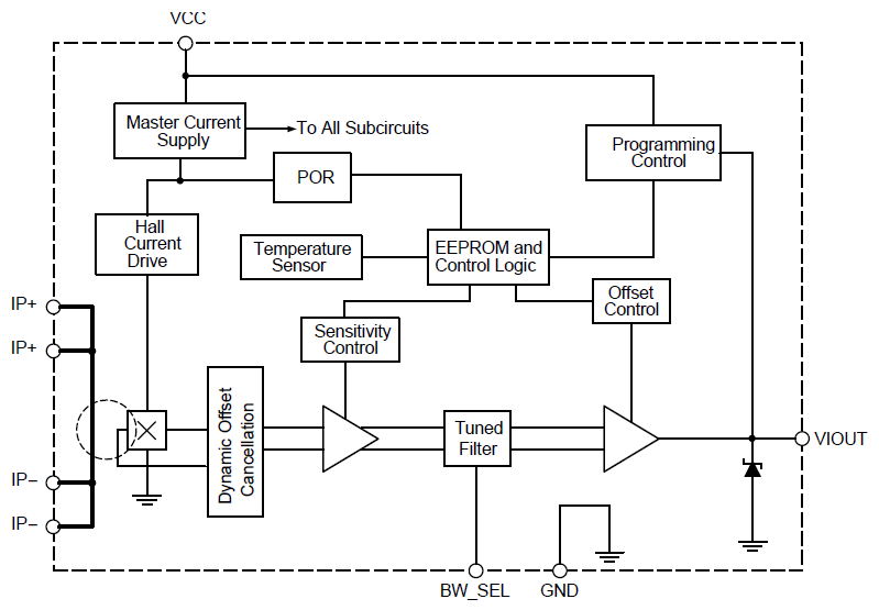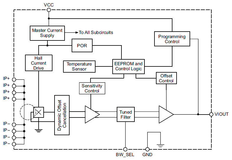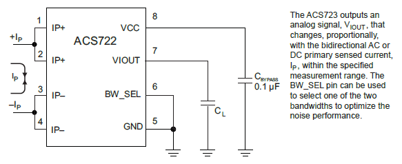 - ACS723LLC: Integrated shield virtually eliminates capacitive coupling from current conductor to die, greatly suppressing output noise due to high dv/dt transients