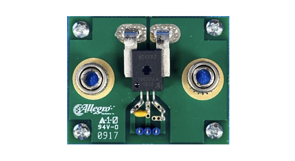 Evaluation boards offer a method for quickly evaluating Allegro current sensors in a lab environment without needing a custom circuit board. This document describes the use of the ACS772CB Evaluation Board. This evaluation board (TED-0003440) is intended for use with the ACS772CB custom 3-pin SOIC current sensor IC.