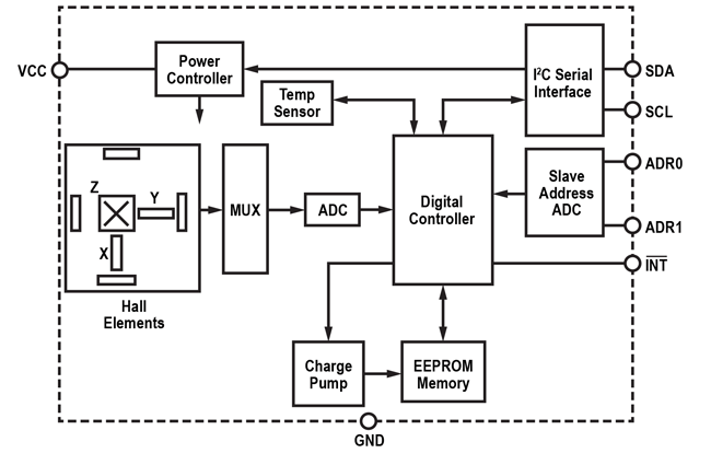 - Senses magnetic fields in X, Y, and Z axes