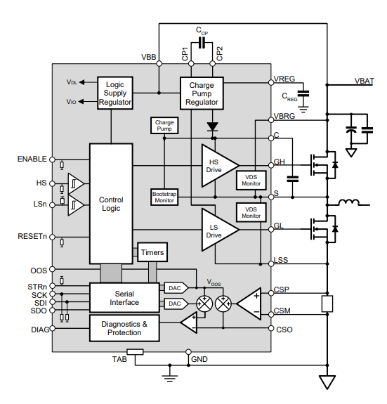 - SPI-compatible serial interface with programable diagnostics