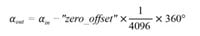 error = mod[(α_sensor – α_encoder) + 180,360] – 180.