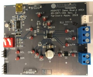 This evaluation board is used to demonstrate the Allegro A5947GET three-phase sensorless fan driver IC.