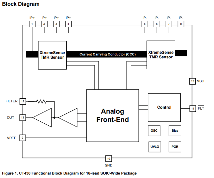 The CT430 (VCC = 5.0 V) offers high-accuracy XtremeSense TMR current sensing with ultra-low noise, a fast 300ns response time, 5kV isolation, and an integrated current carrying conductor (CCC) for simplified design. Includes integrated overcurrent detection for enhanced system protection.